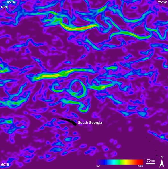 Satellite technologies – our ‘Eyes in the Sky’ – could form part of the solution. Satellites can be used to automatically detect fronts anywhere in the global ocean, and track how they change through time. We can therefore identify regions where fronts often form (‘frontal zones’) – a tool which could prove useful in locating and monitoring priority conservation areas for mobile marine vertebrates. As part of a suite of tools supporting next-generation ocean management (e.g. vessel monitoring technologies, marine biodiversity observation networks), front mapping has potential to help us balance the competing demands of human activity and biodiversity conservation in the oceans. Integration of these technological innovations is vital if we are to ensure the survival of wide-ranging marine vertebrates into the future.