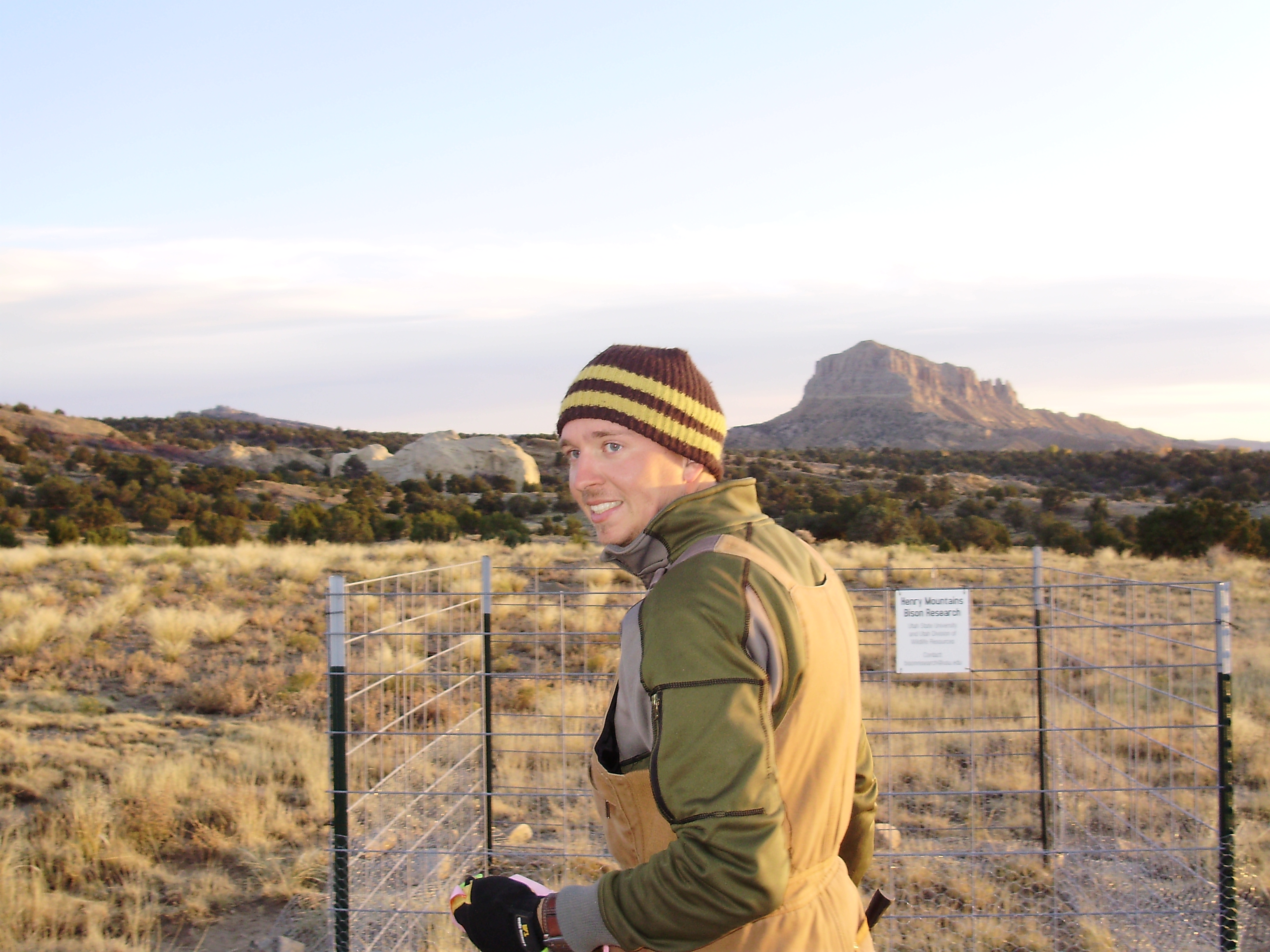 For part of my PhD research at Utah State University, I set out to determine the relative impacts of bison and cattle on the forage resources in the area by using a series of grazing exclosures that would exclude large herbivores, paired with a grazed reference plot. However, upon our first field visit, we noticed a large number of rabbit fecal pellets in the area that had been identified by the local ranching community, the state and federal agencies as the area of greatest concern. These rabbits are much less conspicuous than bison, but based on the number of pellets we felt they may be having a significant impact on forage availability. Thus we decided to add an additional exclosure at each site that would exclude large herbivores AND rabbits, allowing us to determine the relative impacts of all three players in this system – bison, cattle, and rabbits – over the course of one year (October 2011–October 2012). Additionally, we surveyed the local ranching community to determine their perceptions of the bison–cattle conflict, thereby combining the social and ecological to gain a more complete understanding of the system.