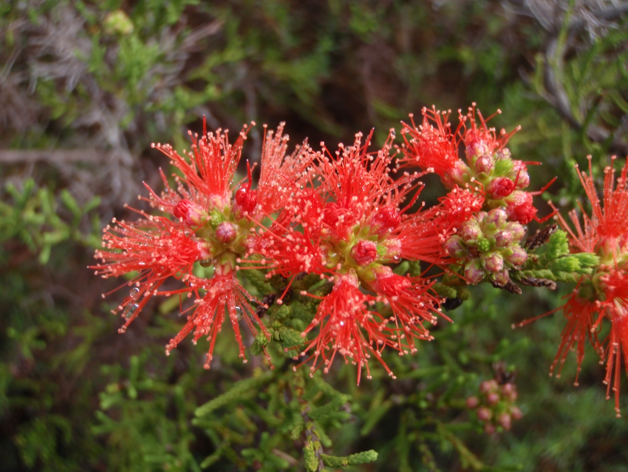 The heathlands contain a diverse range of shrubs, many with highly restricted ranges, and typically easily killed by even low-intensity fires. Fire-killed shrubs must recruit from soil- or canopy-stored seed following fire, and reach reproductive maturity before the next fire. Heathland shrubs typically require at least 5 years to mature – so if fires are more frequent than once every 5 years, local population declines occur.