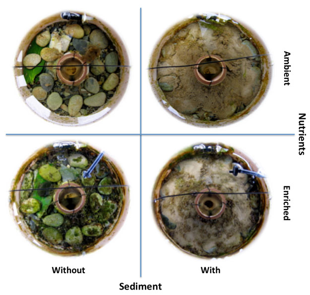 In streams and rivers draining agricultural catchments, deposited fine sediment and elevated nutrient concentrations represent two important land-use stressors commonly associated with degraded ecological conditions that can interact in complex ways to affect ecosystem structure and function. If or how climate-change induced warming will interact with these other stressors is largely unknown, but of potential concern is whether increased temperature will interact with existing or impending stressors to create ecological surprises in the form of synergisms (amplified effects) or antagonisms (reduced effects), in comparison to what would be expected based on knowledge of individual effects.