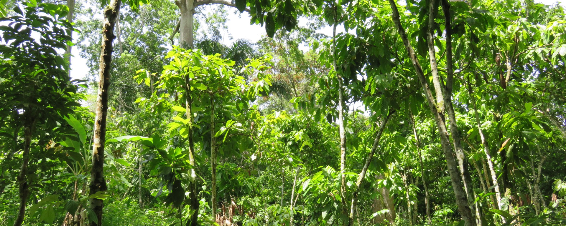 Either remnants from former forest or planted by the farmers, the shade trees in cocoa agroforests are very diverse and are selected not only for the shade they provide, but also the provision of additional goods for the local populations. For instance, some shade trees, such as Iroko, produce high-quality timber, while others, such as Safou, provide food for the farmers.