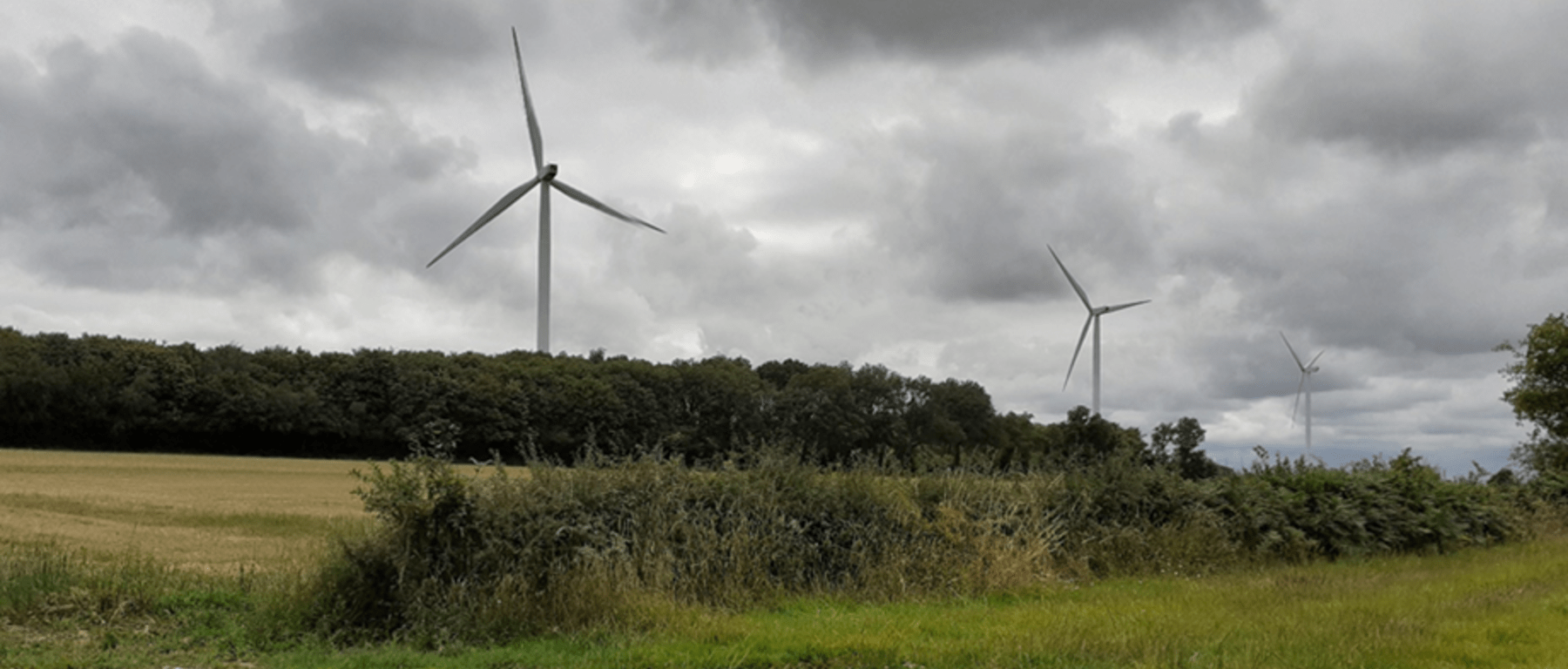 In our study, we investigated how bats respond to wind turbine presence along a gradient of distance from an important habitat for bats: hedgerows. To do this, we recorded activity levels in open fields at different distances to hedgerows with and without wind turbines.