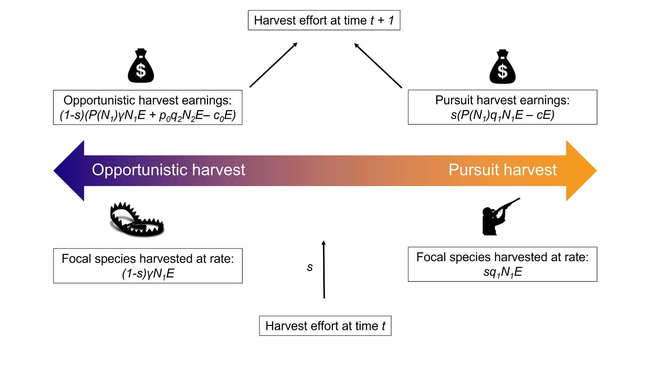 Even in the absence of rarity value, it is possible for hunters to mitigate the high cost of hunting rare species by relying on alternative income sources. Up until this point, we have discussed harvest as a single-species system, but it is common for hunters to exploit many species simultaneously.