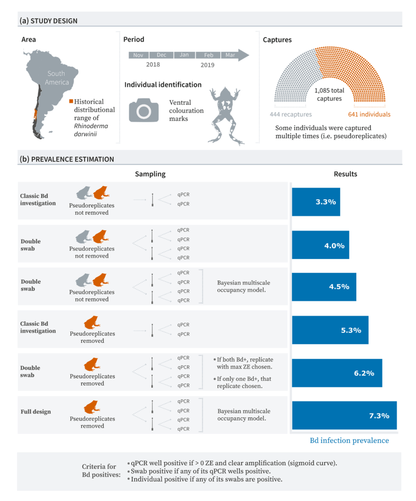 But we show here, using Darwin’s frogs and chytrid fungus infection, that there are ways to account for pseudoreplication and imperfect pathogen detection in wildlife.