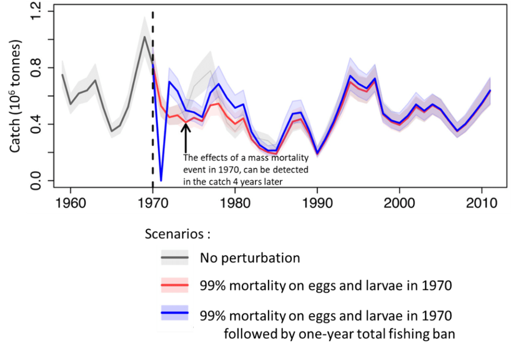 - Can we alleviate the effect of a mass mortality event affecting eggs and larvae, by reducing fishing during the following years?