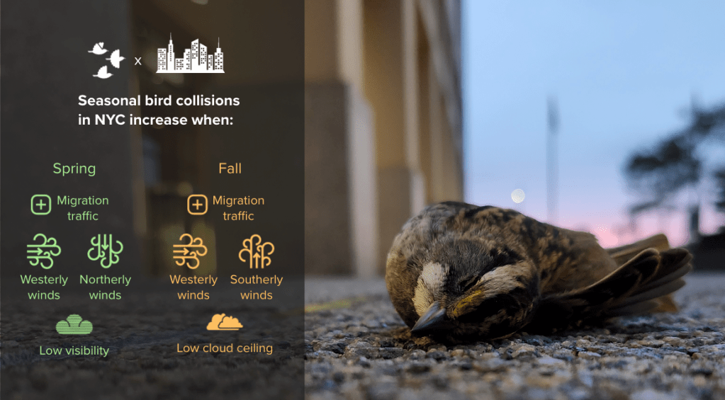 Migration is already a particularly dangerous part of the annual life cycle of many birds, and it’s estimated that collisions with windows kills up to one billion birds across North America each year. New York City is one of the world’s most recognizable megacities, but its brightly-lit iconic skyline also makes it a hotspot for bird collisions.