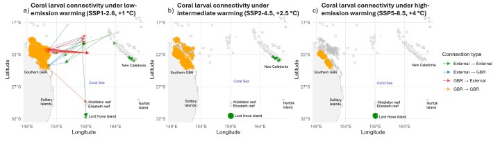 These findings suggest we need to rethink coral reef protection. Rather than managing each protected area separately, managers should coordinate across international boundaries to protect the “stepping-stone” reefs in the Coral Sea that connect distant systems, and prioritize Lord Howe Island as a climate refuge reserve—it may be one of the last coral reef systems standing in this region by 2100.